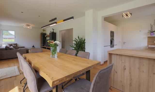 Wir haben uns für das ELK Design 130 entschieden. Dieses Haus bietet uns und unseren Hunden genügend Platz zum Wohlfühlen. Die Aufteilung der Räume entsprach genau unseren Vorstellungen. Unser Haus wurde nur gespiegelt, alles andere war für uns so perfekt.